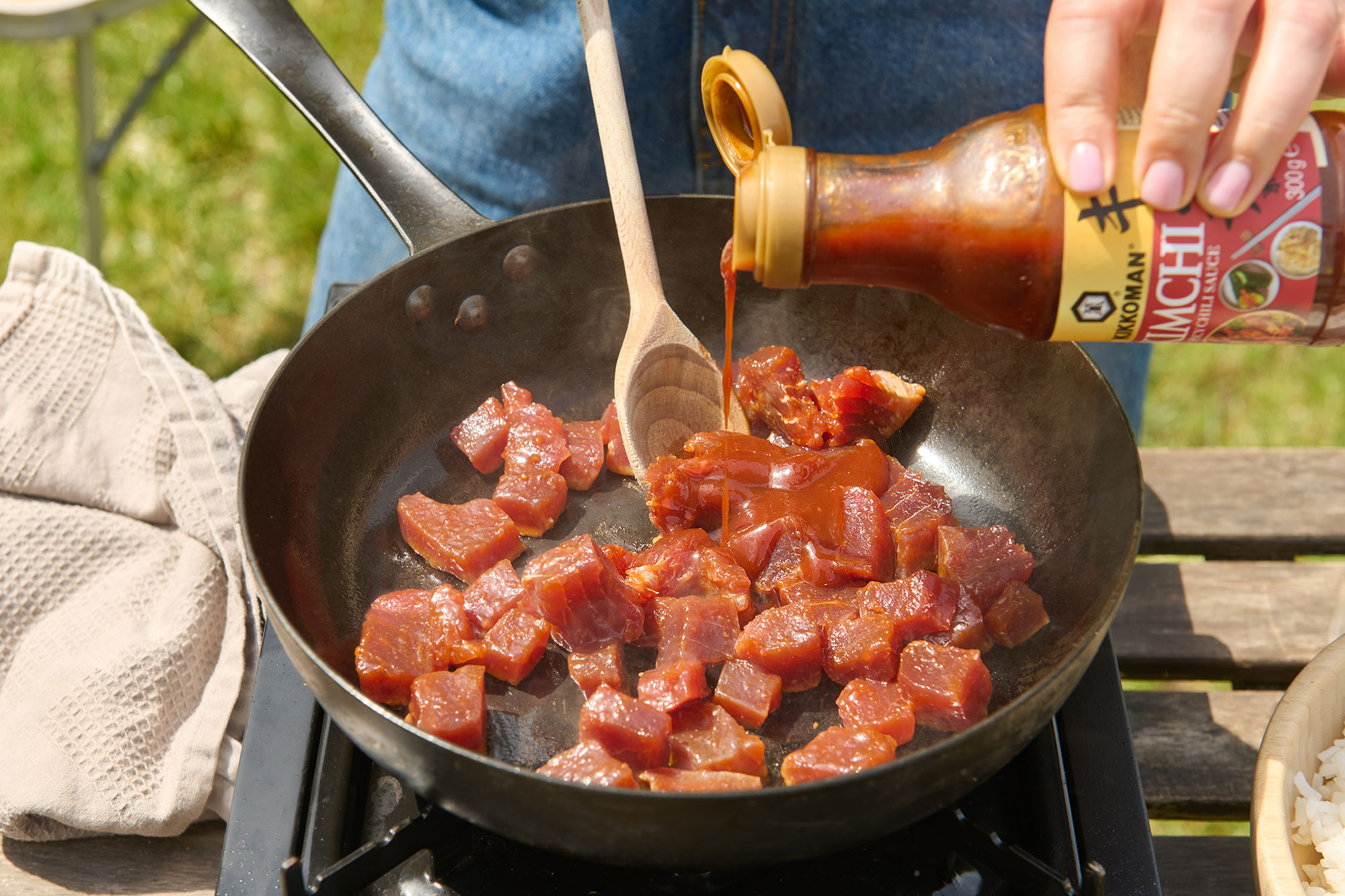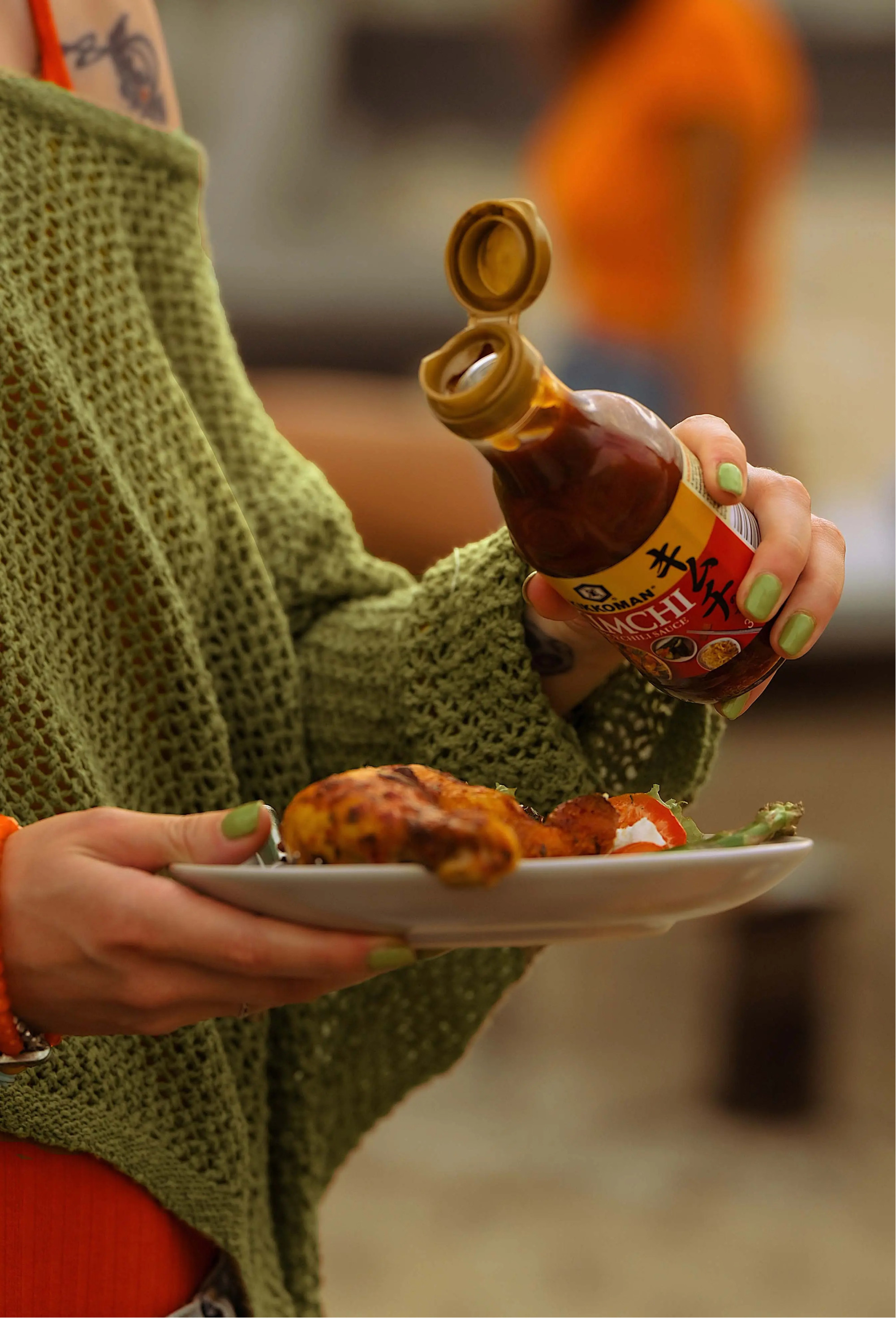 Te simți ca pe culmile lumii! Împreună ne bucurăm de priveliște — și de cea mai bună mâncare! De exemplu, puiul fraged la grătar, marinat în lapte bătut. Un adevărat răsfăț! Iar nota picantă perfect echilibrată vine de la sosul Kikkoman Kimchi!