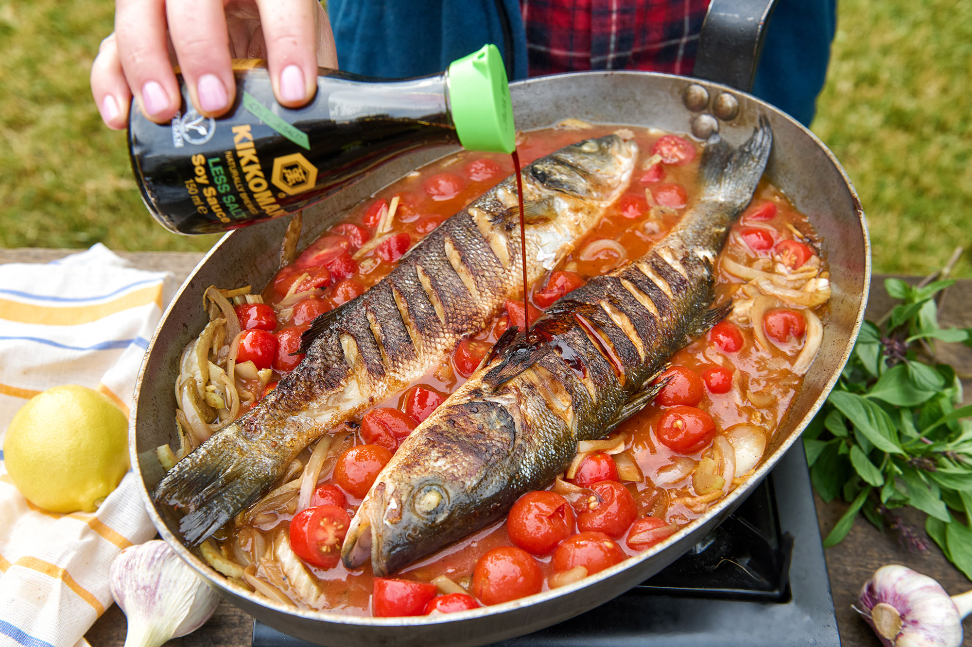 Pește proaspăt cu verdețuri aromate — și un strop de sos de soia Kikkoman. Asta e rețeta mea preferată pentru relaxare.