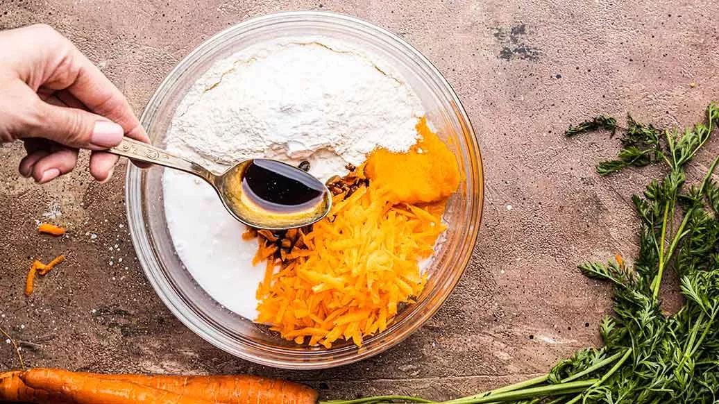 Preparare: Rade morcovul. Amestecă iaurtul cu laptele vegetal, piureul de dovleac, morcovul ras, făina, praful de copt și sosul de soia Kikkoman cu conținut redus de sare. Coace 2 sau 4 vafe din acest amestec, în funcție de dimensiunea aparatului de vafe (dacă este mai mare, vei obține 2 vafe din aceste ingrediente).